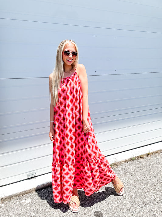 Gorgeous Geometric Maxi Dress in Red