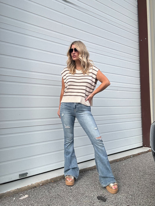 Pack Your Bags Striped Shorts in Cream/Mocha