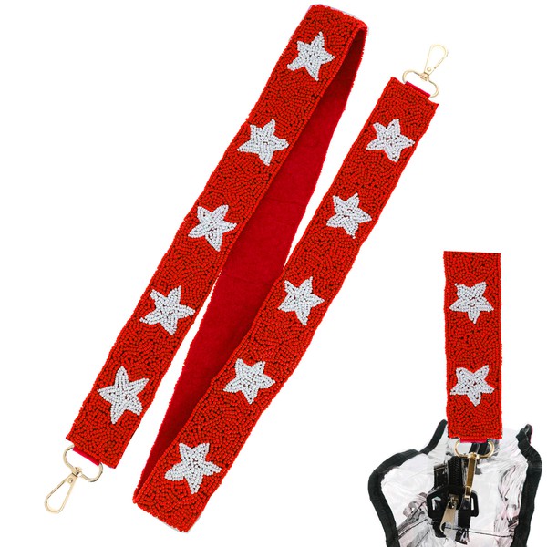 Be ready for any game day, concert, or everyday occasion with this beaded star purse strap in red and white! With gold clasps, you can easily switch it up from purse to purse. So fun and so chic - you won't want to go without it!