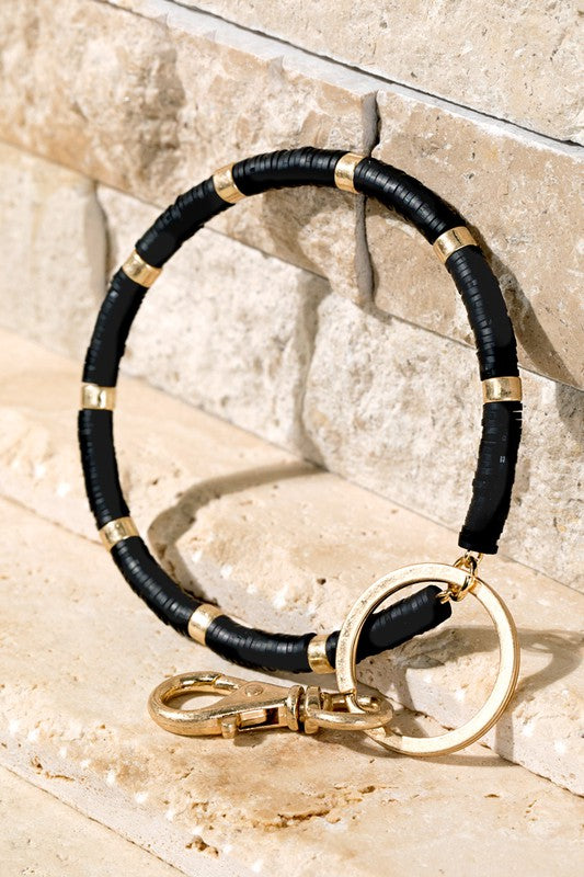These key ring bracelets are best way for keeping up with your keys! Rubber disc beads with swivel lobster clasp! Available in black, pink, white, and turquoise!