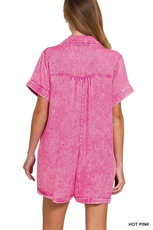 This Tencel mineral-washed romper is an instant favorite! Featuring a half-button front, chest pocket, cuffed hemline, and short sleeves, it’s relaxed, breathable, and effortlessly stylish. Dress it up with wedges or keep it casual with sneakers—either way, you’ll reach for it again and again!