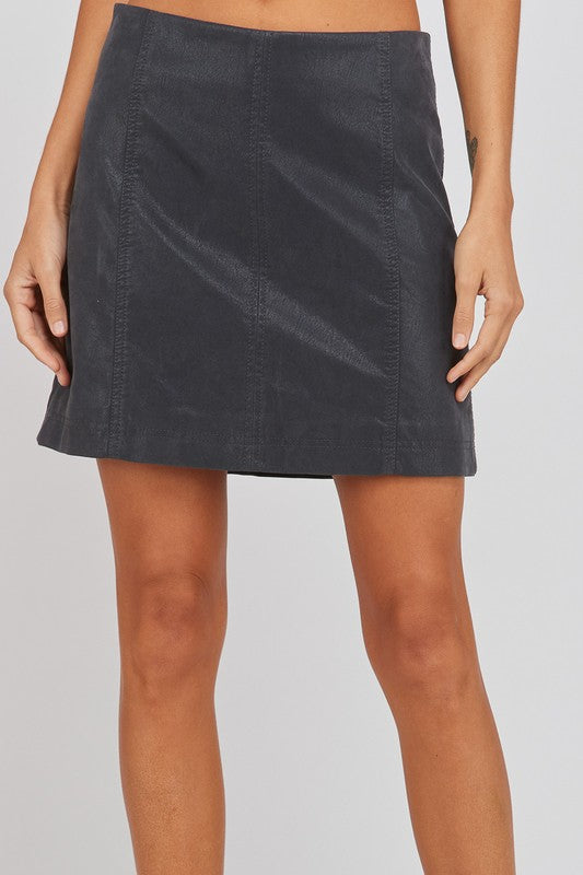 Oh my! I absolutely love the look of this faded black mini skirt! Vegan faux leather mini skirt with center back zipper! 8-panel construction with double needle stitching. Fully lined. 100% polyurethane. Lining 80% polyester 20% cotton. Length- small 16", medium 16.5", large 17"