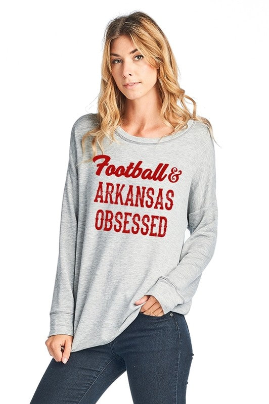đ Football and Arkansas Obsessed long sleeve top! Relaxed fit. 64% rayon 32% polyester 4% spandex