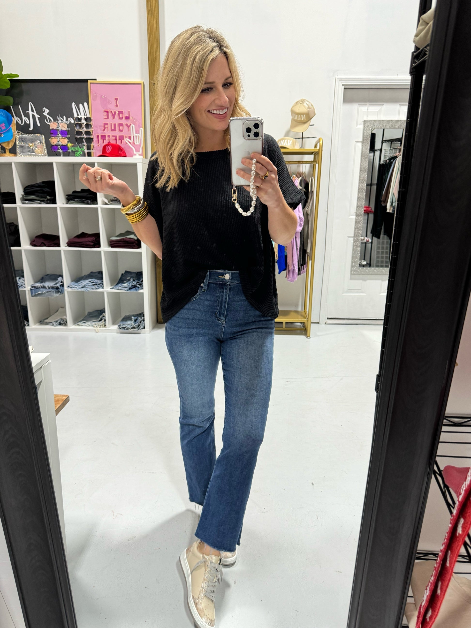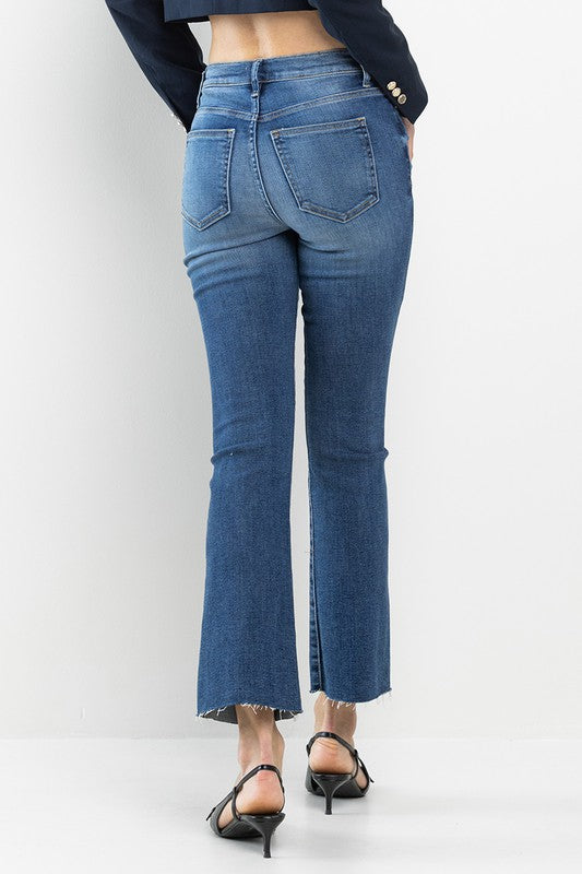 Achieve a seriously flattering silhouette in our Josephine high rise slim kick flare jeans. With a raw cut hem and medium dark wash, you'll achieve an effortlessly cool and comfortable look. The 11" front rise and 18" leg opening flatters your figure while the 15 1/4" knee and 27" inseam adds a touch of modern style. Look and feel your best all day long! Lots of stretch and I suggest sizing down 1 size. Sneakpeek brand.