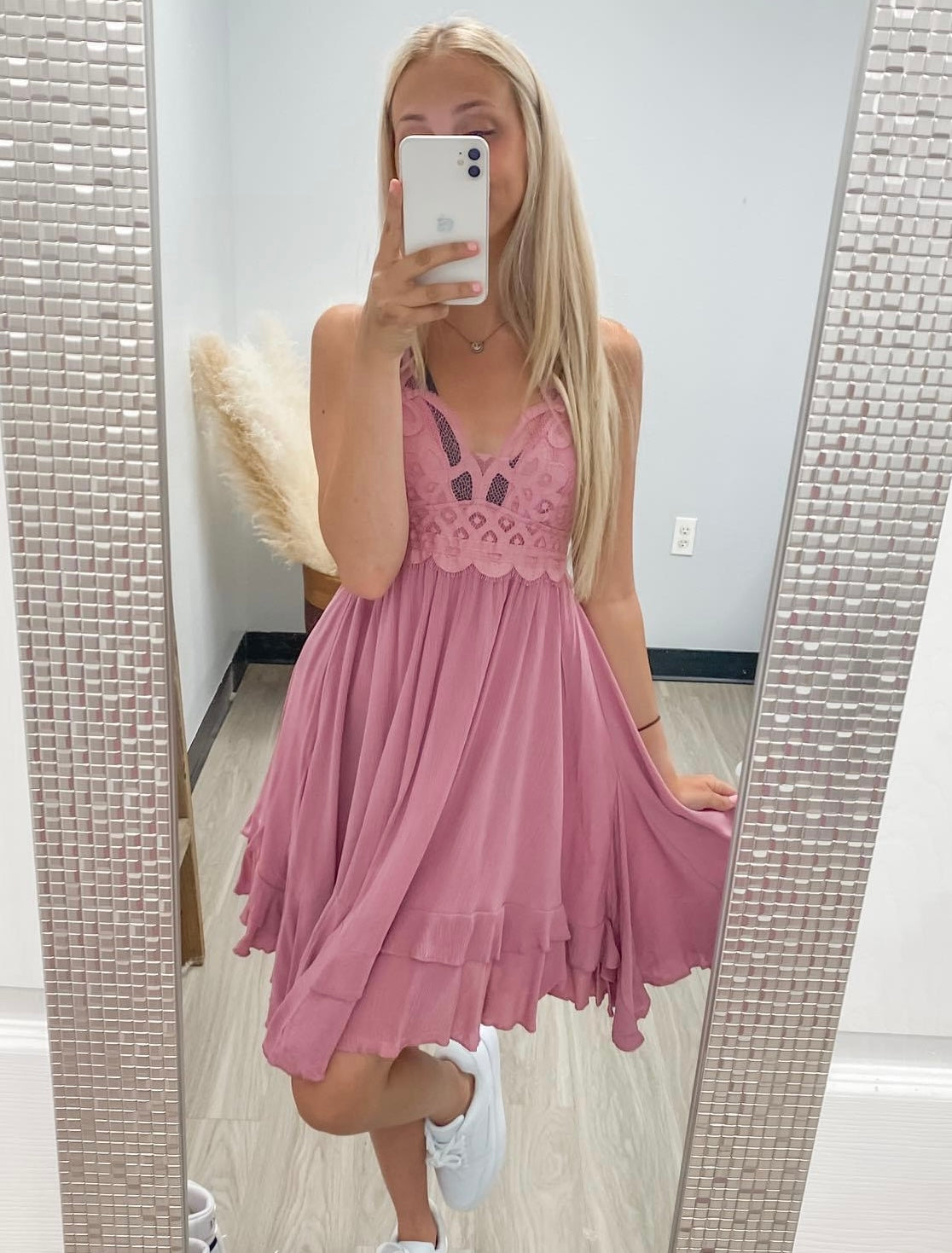 Romantic Soul Crochet Lace Dress in Lt Rose