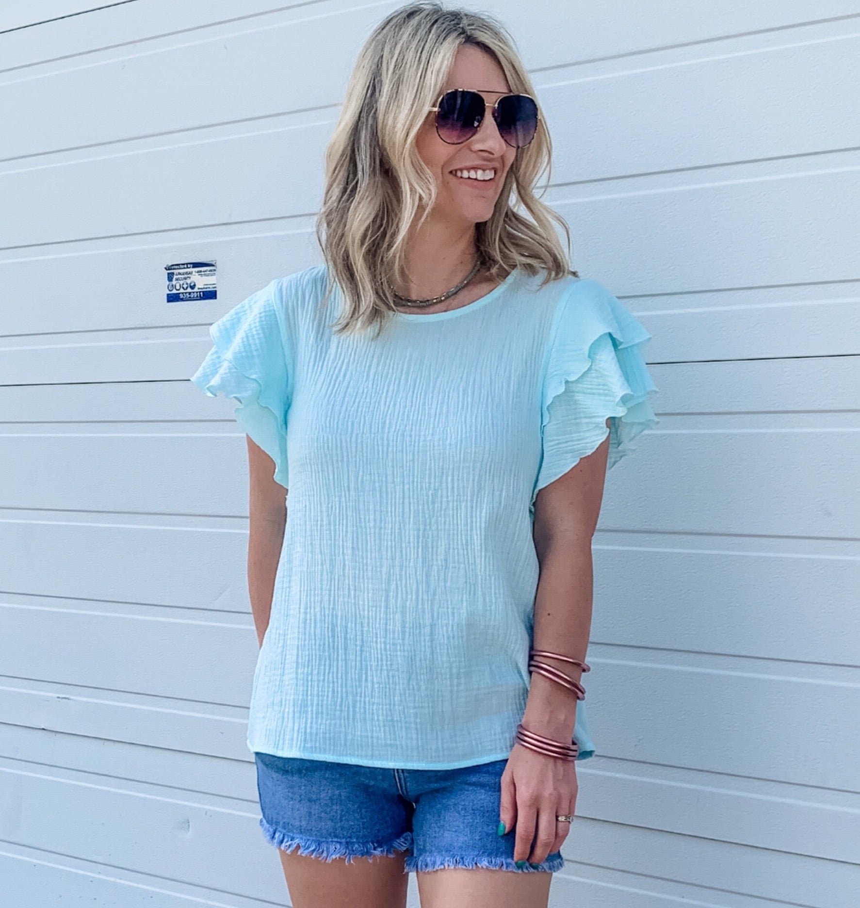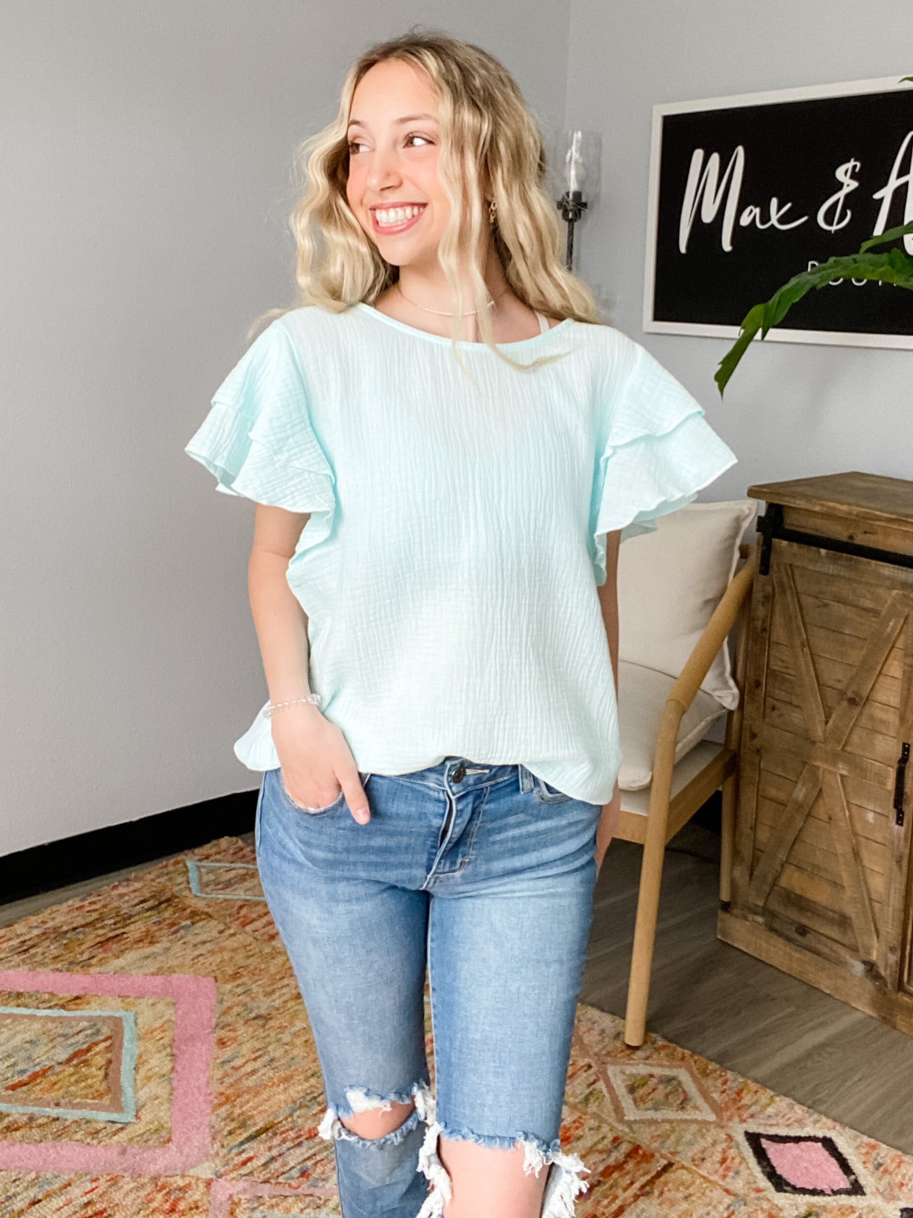 Ruffle Sleeve Cotton Gauze Top in Mint