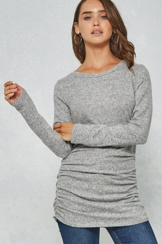 Shirred Side Top in Heather Grey-LARGE