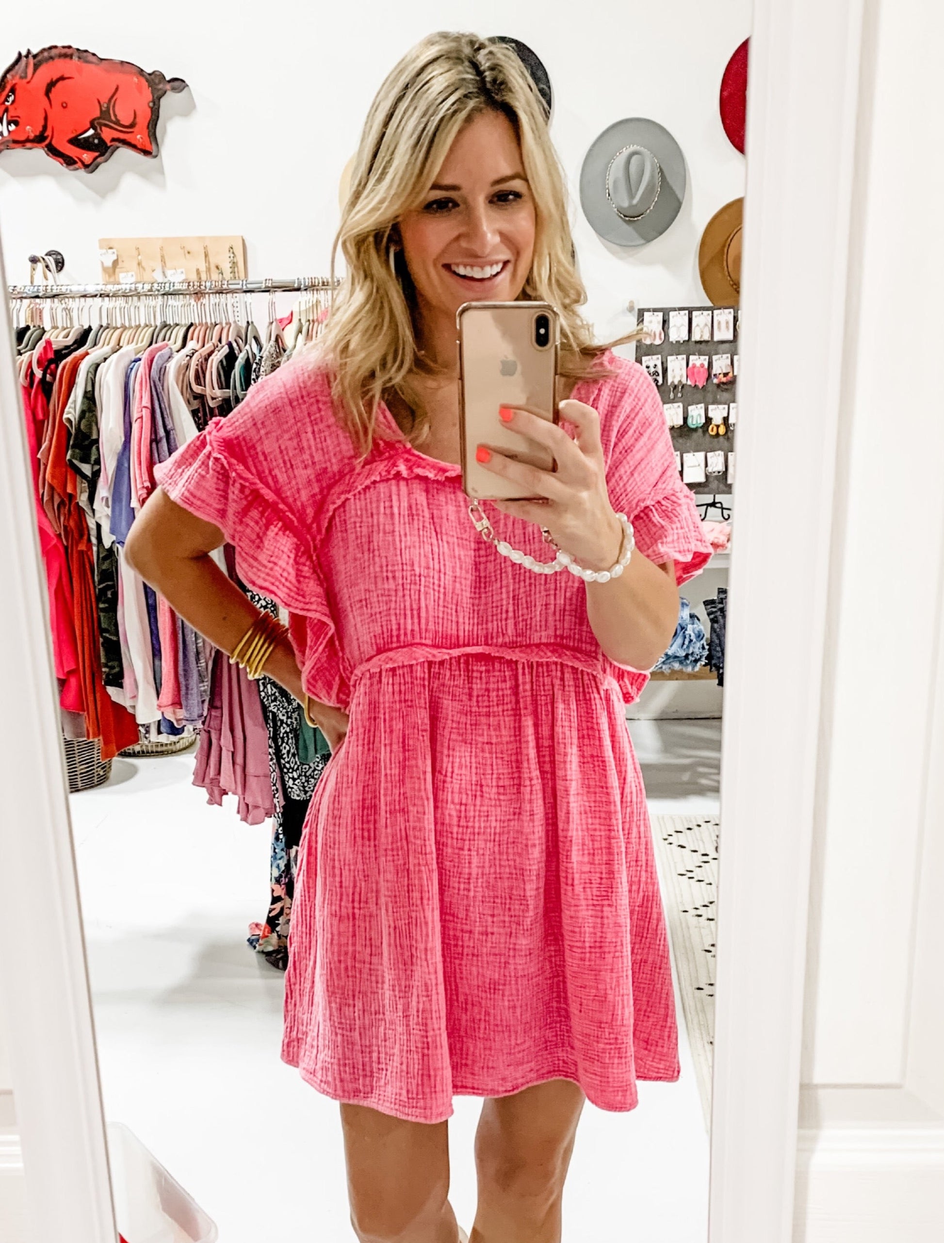 Take your summer fun to the next level with this playful mineral washed fuchsia dress! Crafted with a square neckline, ruffle sleeves, and a flowy fit, you'll be ready for any adventure. Show off your unique style and stand out in the crowd!